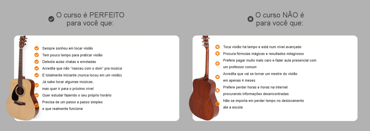 - É totalmente iniciante, Nível Zero (nunca tocou em um violão)